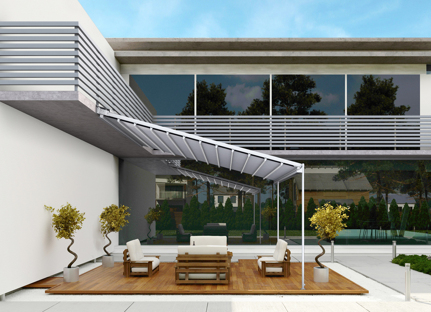Un fenómeno en pérgolas. Elegante, robusta, con la tornillería oculta, con un diseño personalizable, estanca y con posibilidad de motorizarla. Climatika proporciona una pureza de líneas gracias a sus perfiles de 160 x 160 milímetros. También se caracteriza por su posibilidad de refuerzo extra para conexión entre postes y vigas en caso de sobrecarga por nieve o viento, dando opción al igual de elección de dirección de apertura de lamas y la incorporación de luces Led en lama y estructura.